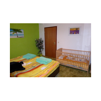 - Im kleinen Schlafzimmer ebenfalls ein Doppelbett und eine Rollgarderobe