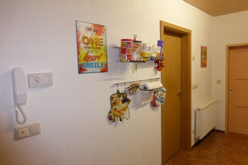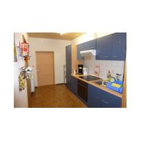 - Die Küche ist eine Einbauküche mit Herd, Kühlschrank, Gefrierschrank (34l) und Mikrowelle